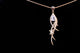The Radiant Rose Elegance Set is a breathtaking collection that exudes luxury and refinement. This set features a pair of elongated drop earrings and a matching pendant, all crafted from rose gold-plated sterling silver. Each piece showcases an round-shaped centerpiece adorned with brilliant white diamonds, surrounded by a halo of...