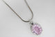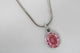 Elevate your elegance with this glowing oval pink VeeLux Premium Crystal pendant, beautifully surrounded by a halo of sparkling stones. Set in sterling silver, the soft pink VeeLux Premium Crystal is masterfully cut to enhance its radiant brilliance, making it a striking centerpiece. Paired with a textured snake-style chain, this...